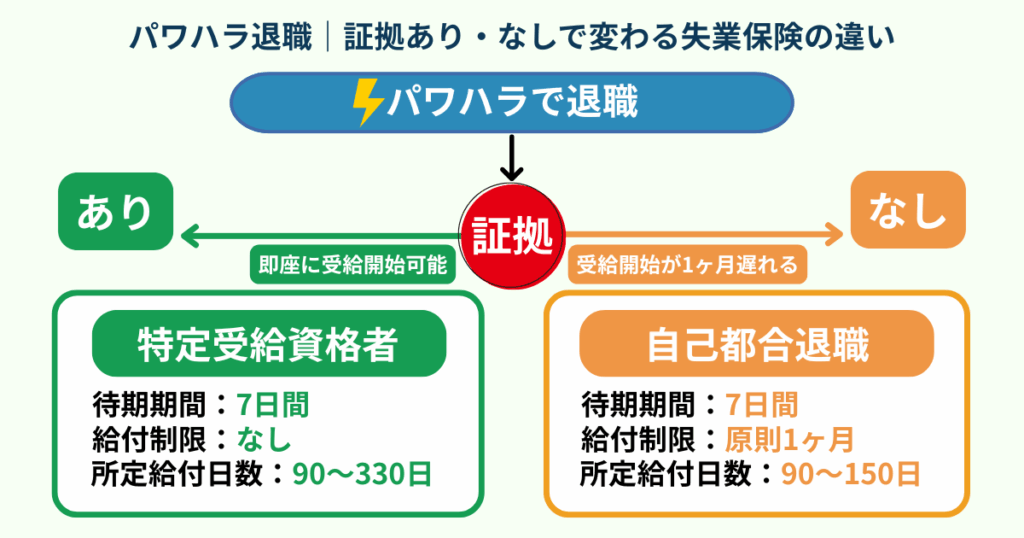 証拠の有無によって、失業保険の取り扱いは大きく変わります。特に「受給開始までの待機期間」や「給付制限の有無」は生活に直結するため、違いを理解しておくことが重要です。