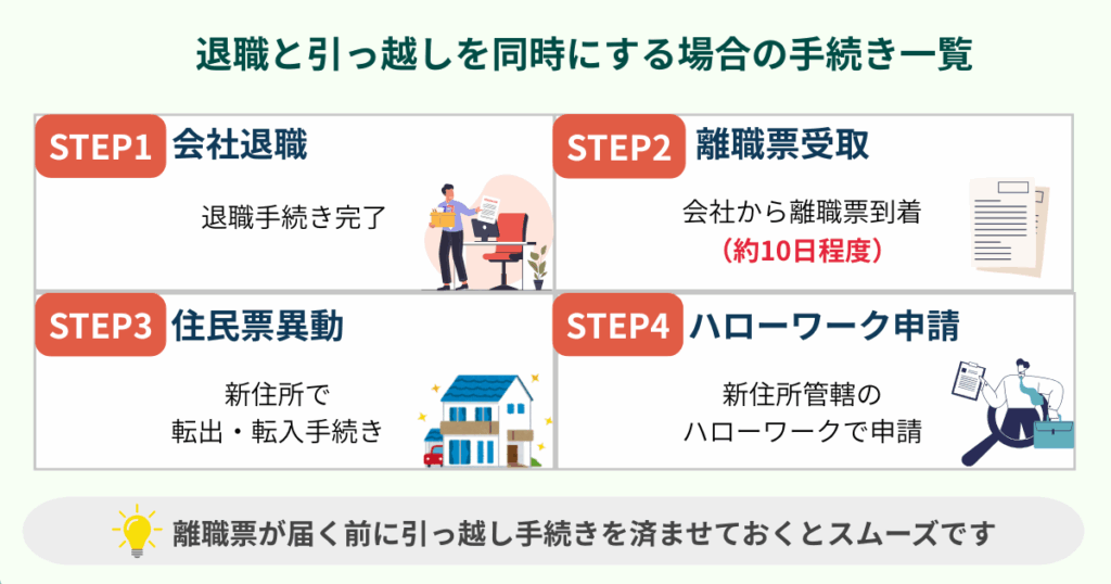 退職と同時に引っ越す場合は、次の流れを意識してください。